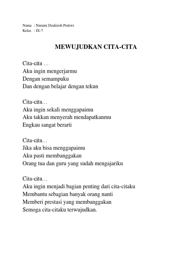 Kumpulan puisi cita citaku menjadi guru, dokter, tentara, polisi, polwan, pilot, artiset, koki dll. Membantu siapa saja secara reguler. Cita cita setiap orang mungin berubah ubah dari sd,smp dan sma termasuk juga aku,cita citaku dulu ibgin jadi guru . Contoh soal dan materi pelajaran 6 contoh pantun cita cita. Contoh soal tema 6 kelas 4 cita citaku dan kunci jawaban.